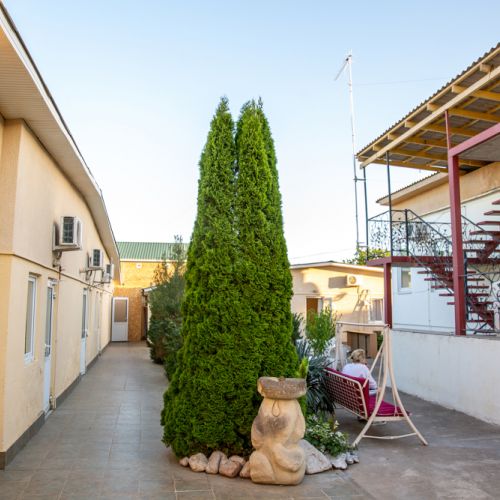 Гостевой дом «КрымНик» расположен в центре крымского поселка Николаевка на песчаном побережье. Вблизи находятся разнообразные объекты инфраструктуры, необходимые для приятного отдыха: водные аттракционы, продуктовые магазины, небольшие рынки, кафе и рестораны, сувенирные лавки и пляжный инвентарь, прогулочные зоны и многое другое. Удобное местоположение позволяет гостям легко добраться до всех достопримечательностей полуострова, а также насладиться отдыхом на Черном море.